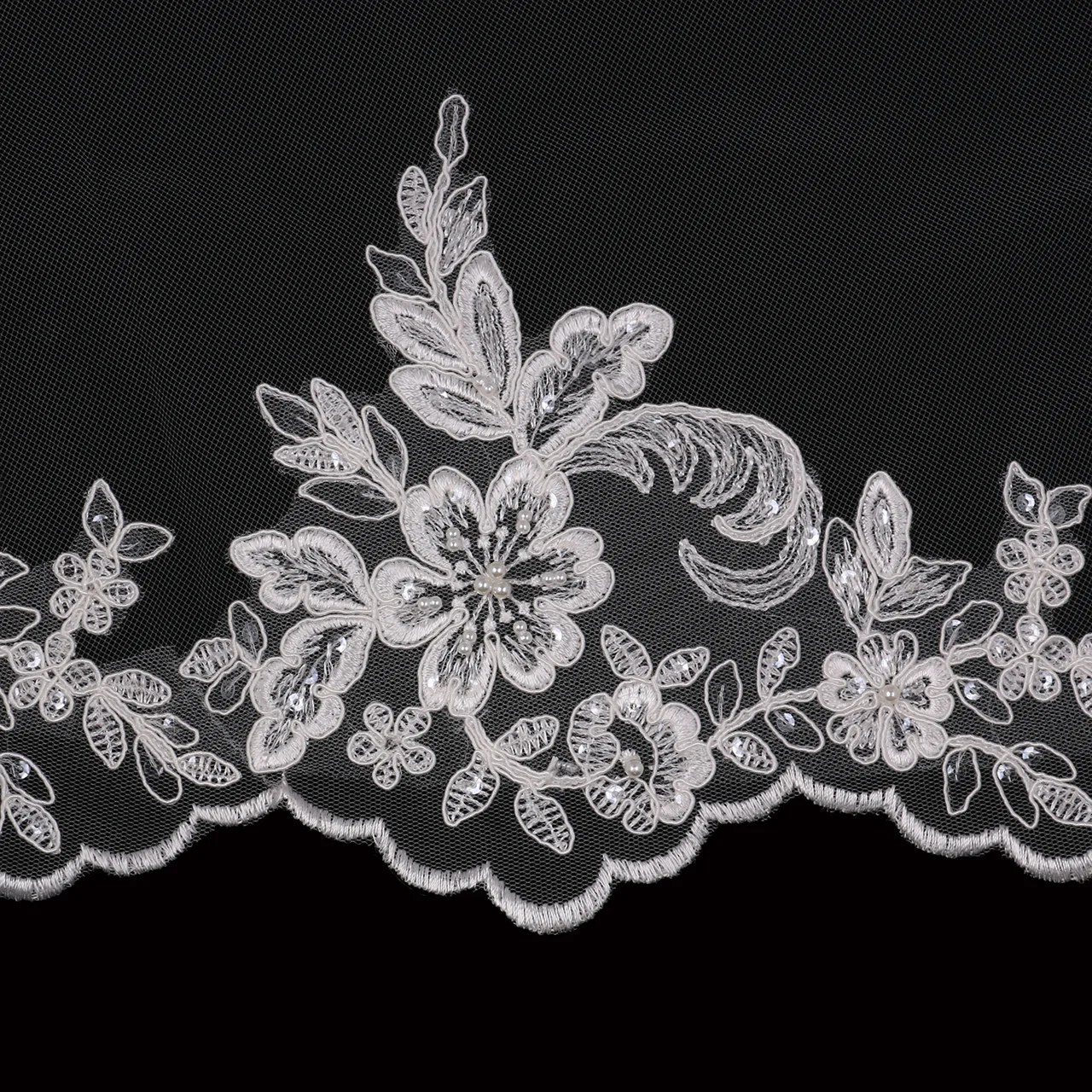 English tulle with beaded lace