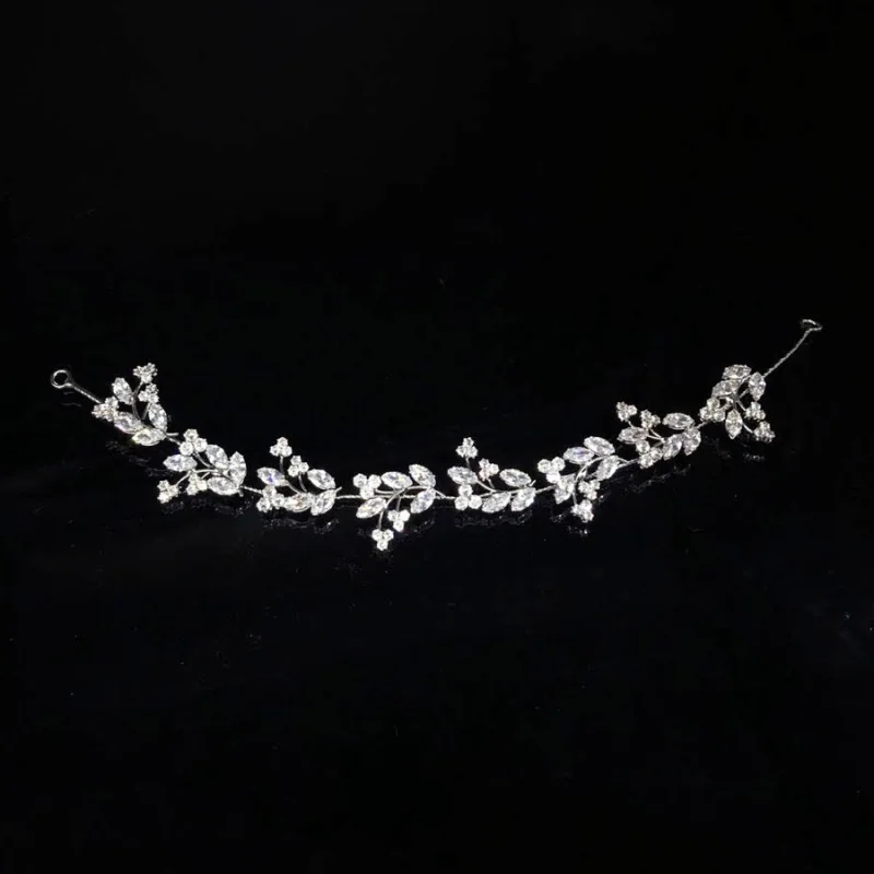 Vintage Inspired cubic zirconia hair vine -unique crystal vine – embellished with high quality clear cut zirconia crystals on a silver vine. Flexible with loops on either end. Includes an ivory ribbon. Can be fixed into the hair with a ribbon or pins. Size is 29cm long